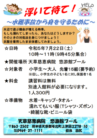 ★申し込み 天草慈恵病院 悠游館プールまで ☏37-1111